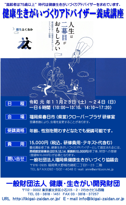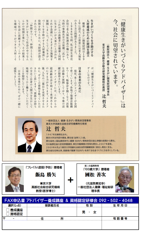 | 第三回健康生きがいづくりアドバイザー養成講座 (平成27年10月4日18日、11月1日15日) |